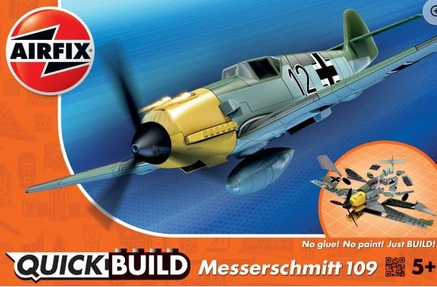 Messerschmitt Bf109e was a fighter aircraft that could excel in speed just as fast as the Spitfire! Complete your final model with the Balkenkreuz stickers provided, the emblem of the German Armed Forces in World War II. This model has a total of 36 parts with 3 additional parts for the stand. The height of the model when placed on the stand is 114 mm. Airfix QUICK BUILD is an exciting range of simple, snap together models suitable as an introduction to modelling for kids (ages 5 and up), or as a bit of construction fun for the more experienced modeller. The pre-coloured pieces simply push together, without glue or paints, to build an impressive model which can then be decorated with the included self-adhesive stickers. Plane models also come with their own display stand to show off your handiwork! The whole QUICK BUILD range is manufactured here in the UK and features some of the most iconic vehicles ever constructed! Manufactured in the UK!