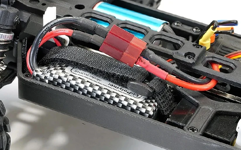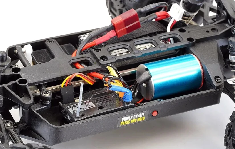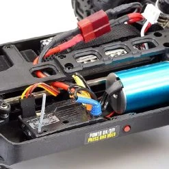 With a 3800kv brushless motor hooked up to a 7.4v 1000mAh 2S lipo battery the Tracer brushless really puts to use its rear mounted wheelie bar. Metal rear dogbones are included for extra durability along with new rear upper suspension links for added reliability under power.