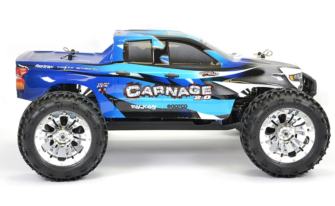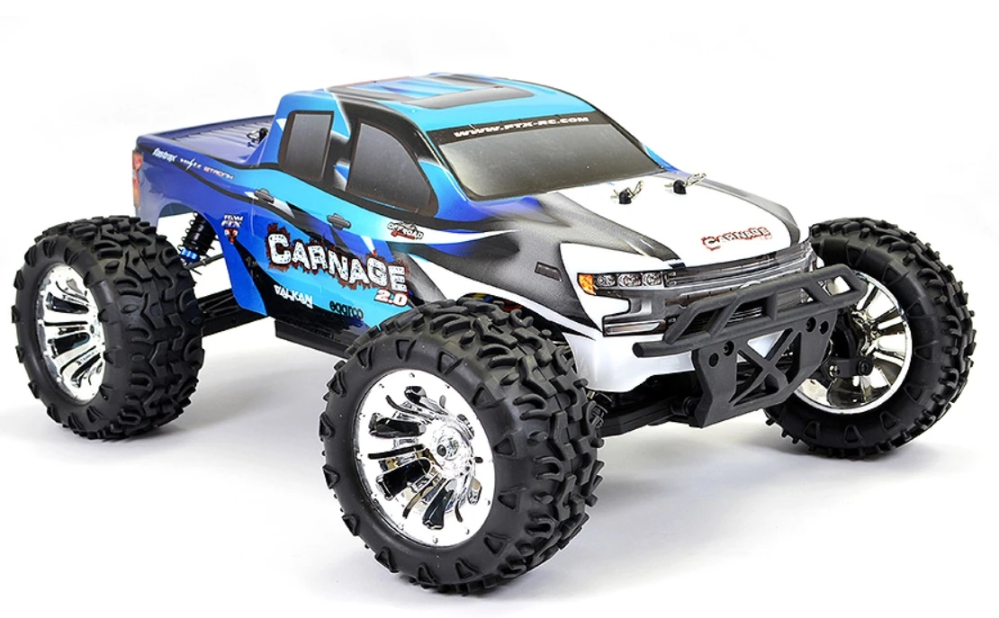 Since it’s release over six years ago the FTX Carnage has become a huge favourite with beginners looking for an affordable entry into the world of R/C. Well we thought it was about time this fan favorite had a face lift with the Carnage 2.0. Two new bodyshell schemes and colours, chrome plated wheels, Etronix 3ch radio and a new 60amp rated brushed esc means the Carnage legacy is set to continue for a long time to come!