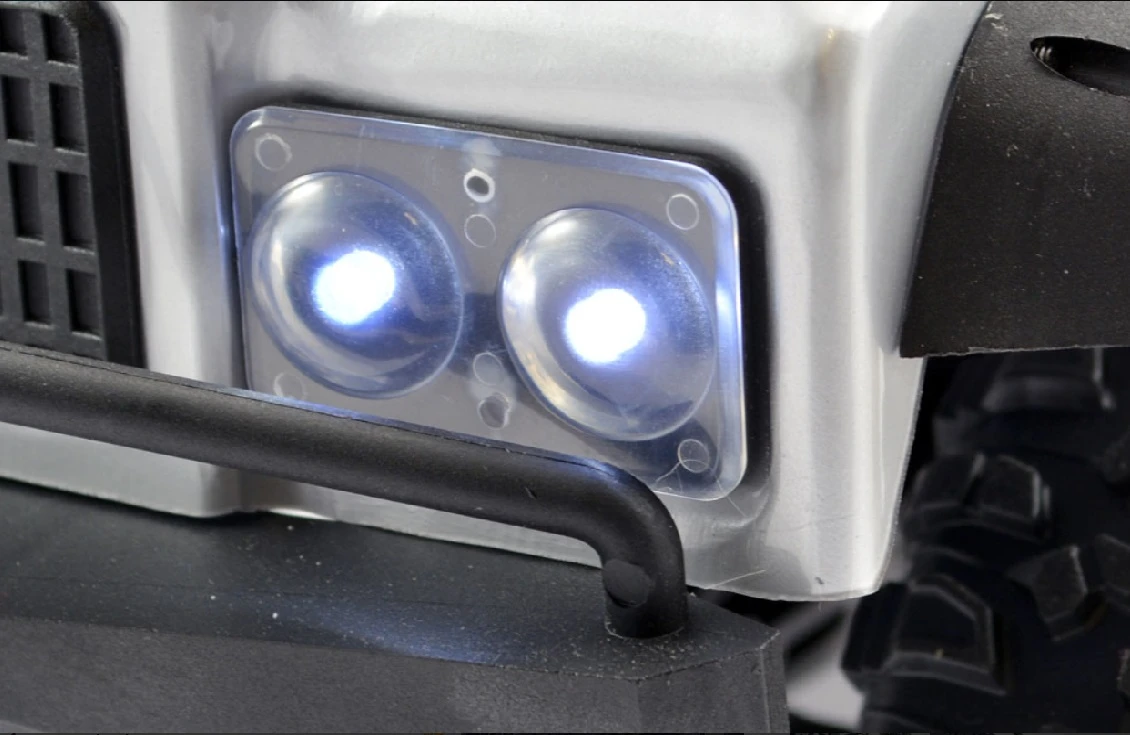 The Kanyon’s off road inspired semi-scale bodyshell features a number of additional moulded accessories such as wheel arches, luggage tray, roll cage, front grill and head, tail, spotlights. The aluminium front and rear bumperand body mounts provide a wide selection of optional positioning for possible aftermarket options and to wrap things up 13 factory installed LED lamps provide the necessary illumination for you to keep your rig on the trail long afterthe sun goes down.