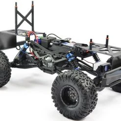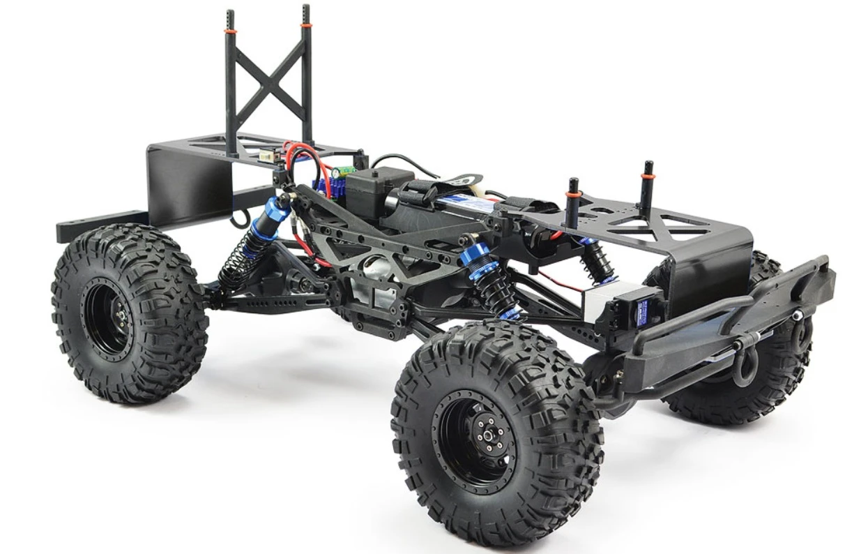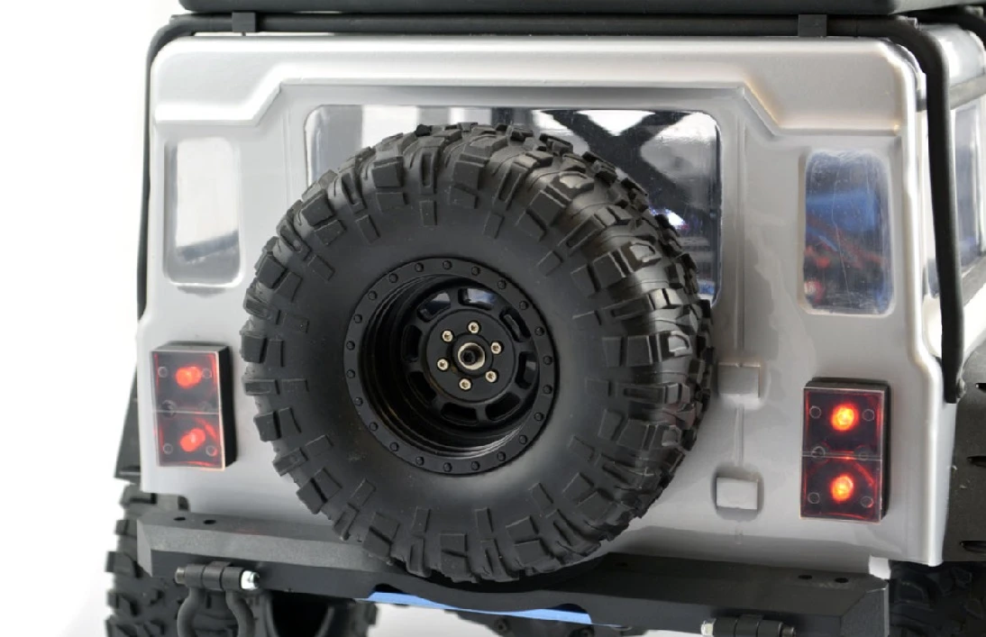 Supersoft aggressive lug pattern tyres are mounted to scale style wheels for a realistic finish. With a blend of semi-scale looks, reliable chassis platformand over 10% bigger size than most trail crawlers.