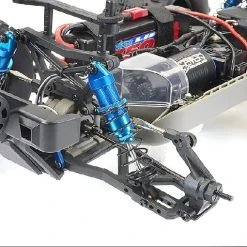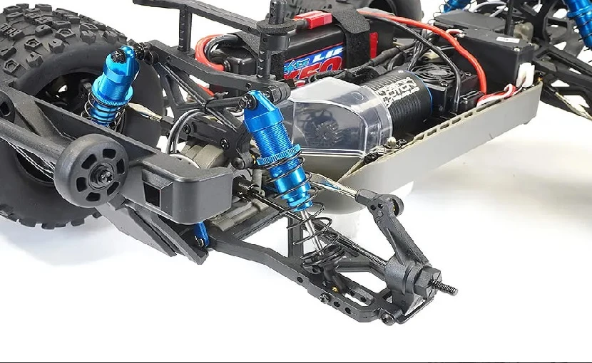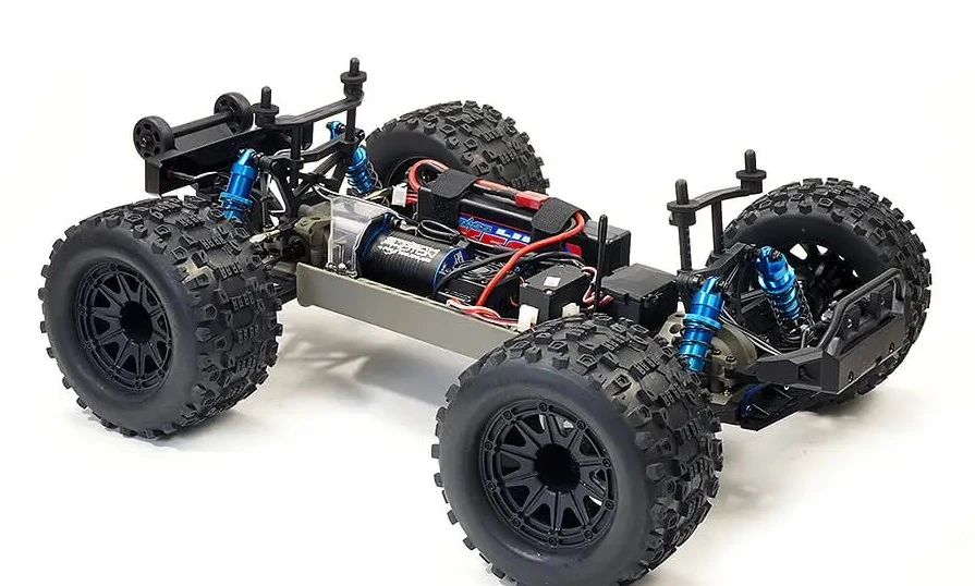 Oil filled aluminium shock absorbers along with a raised high clearance main chassis, with aluminium front and rear skid plates glide over most terrain effortlessly. Should you take a tumble, shock absorbing bumpers and moulded body roof and tail skid bar rails help protect from heavy damage when possible.
