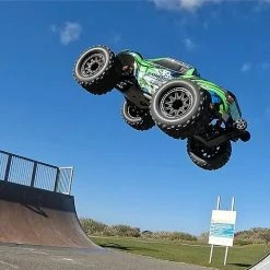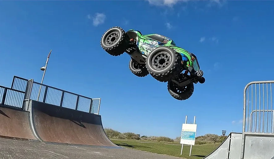 Powered by a Hobbywing 50A brushless speed control and 2500kv motor, coupled with the included Voltz 3S 3500mAh Lipo battery the RamRaider can reach impressive top speeds for its size, while still being very drivable on most surfaces. The rear mounted wheelie bar works to provide a sta-ble footing for those heavy accelerations when you light up the rear tyres.