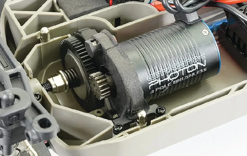 Etronix 2500kv brushless motor, Hobbywing brushless speed control and Voltz 3S 3500mAh LiPo battery provide speed and power.