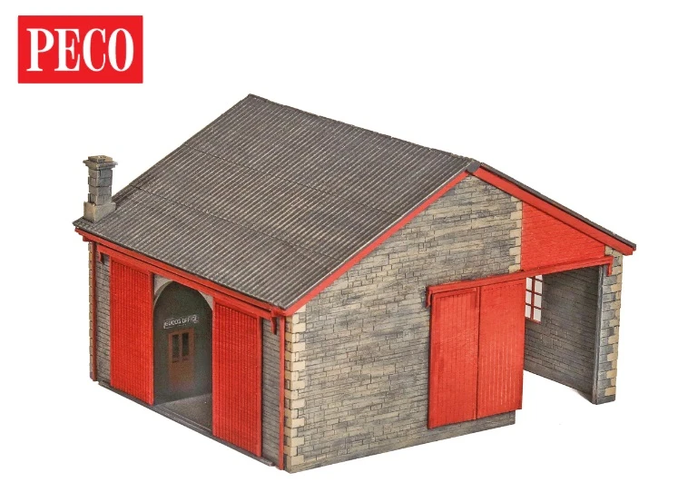 Small goods shed with siding running through it, based on Bovey in South Devon. The doors can be fixed in either open or closed position and the interior features detailed stonework, roof rafters, loading platform and goods office.