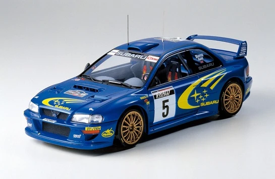 This is a plastic model assembly kit recreating the Impreza WRC that Subaru ran in the 1999 season. ★From the honed aerodynamic form to the various mechanisms and encompassing a detailed interior, the form of the car is captured in style. ★Clear underguard parts can be left unpainted to show off the detail beneath. ★Synthetic rubber tires have realistic tarmac tread patterns. ★Choose between two different marking options.