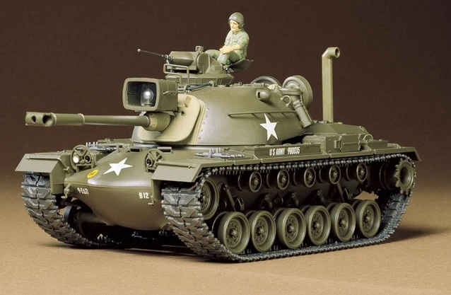 This is a 1/35 scale plastic model kit of the American M48A3 Patton tank, which served with distinction during the Vietnam War. ★The tough appearance of the tank, including its cast metal surface texture and canvas section of the gun mantlet is accurately reproduced. ★Details such as the searchlight and machine gun cupola are also brimming with realism. ★The kit includes accessory parts such as an engine exhaust snorkel, jerry cans, and spare track links as well as 2 tank crew figures