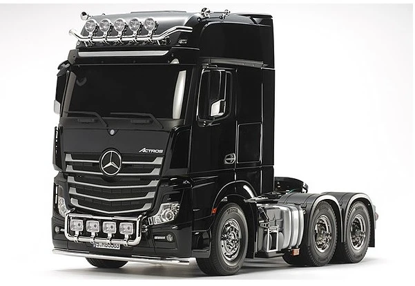 The 2012 Truck of the Year award-winning Actros series is the flagship of the world’s leading truck manufacturer, Daimler AG (Germany). This R/C model assembly kit recreates the dual rear axle-driven Actros 3363 6×4 GigaSpace model, which runs on a 15.6-liter turbocharged inline-6 engine capable of 630hp. The model’s highly detailed body breathtakingly captures the powerful form of the truck, including depictions of auxiliary lights on cab roof and bumper. Its ladder frame chassis features aluminum side channels with resin cross members, while the suspension employs leaf springs and friction dampers. An assembly type 3-speed transmission allows gear changes via separately available 4-channel transmitter.