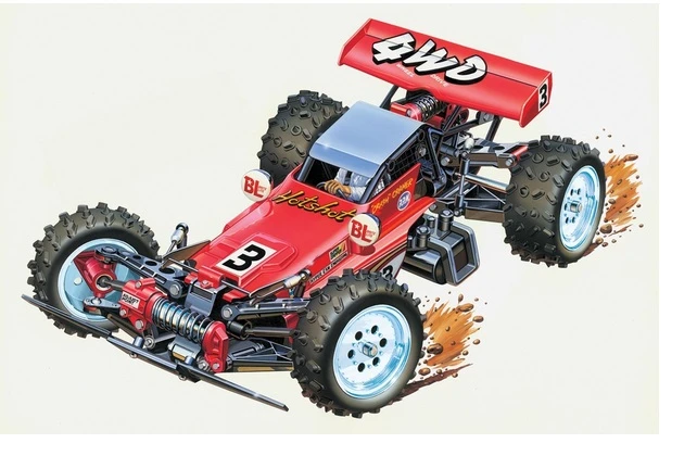 This is a re-issued R/C assembly kit of the Hot Shot. It originally debuted in 1985 as Tamiya’s first 4WD off-road buggy.