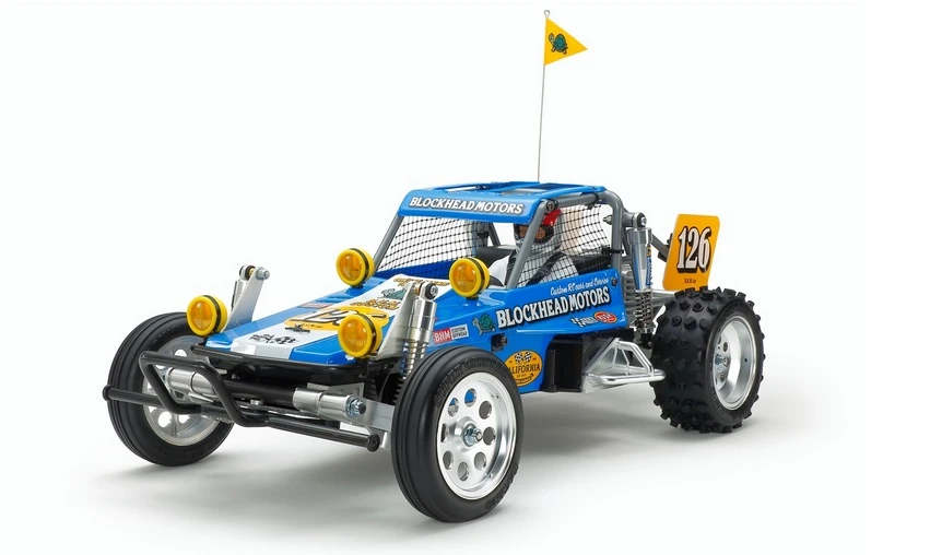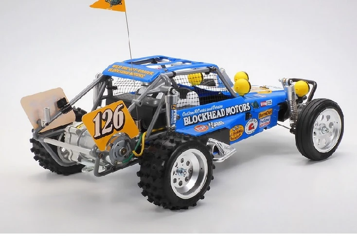 • Includes new stickers designed by Jun Watanabe’s brand “BLOCKHEAD MOTORS”.Requires :2 Channel Radio with one Servo, Re-chargeable battery and charger, AA Batteries and paint.