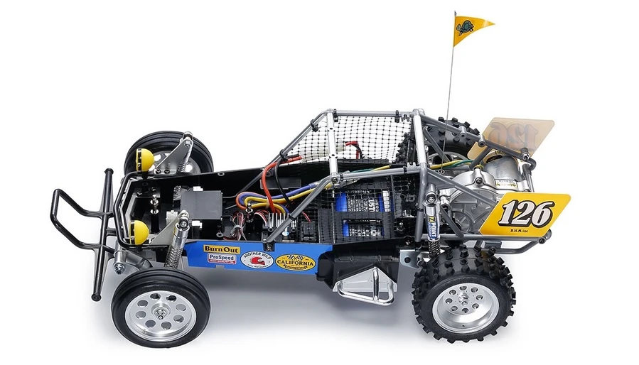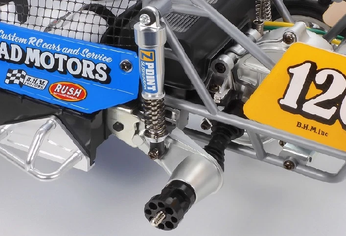 • Durable and lightweight ABS box type frame is matched with a battery case which is compatible with modern power sources such as Tamiya Racing Packs and LF batteries.