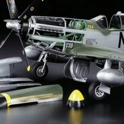 The P-51D Mustang is considered by many to be the best fighter aircraft of WWII. It incorporated advanced features such as a laminar flow wing and an efficient radiator design. Powered by the Packard-built Rolls-Royce Merlin V-1650 engine, it demonstrated superior performance and is widely considered to be the definitive variant of the Mustang. They were used to escort bombers such as B-17s and B-24s all the way to Germany and helped the Allies gain air superiority over Europe. Tamiya has reproduced this famous aircraft with utmost accuracy for addition to the 1/32 Scale Aircraft Series. The unmistakable form of the P-51D is accurately reproduced based on actual design drawings of the aircraft as well as thorough study of actual examples. Line it up with Tamiya’s 1/32 scale Supermarine Spitfires and A6M Zeroes for a display of iconic WWII fighters.